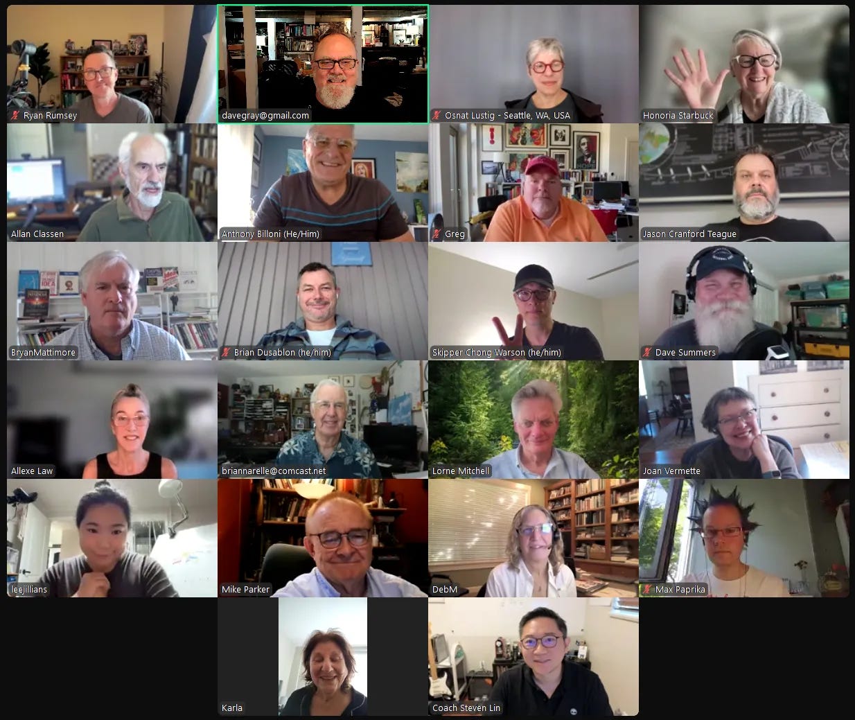 The call happens from 9 to 10:30 AM Pacific time. Click this link to join the call. We do breakouts and talk about projects we are working on and whatever happens to be inspiring us. You can drop in or drop out anytime during that window.